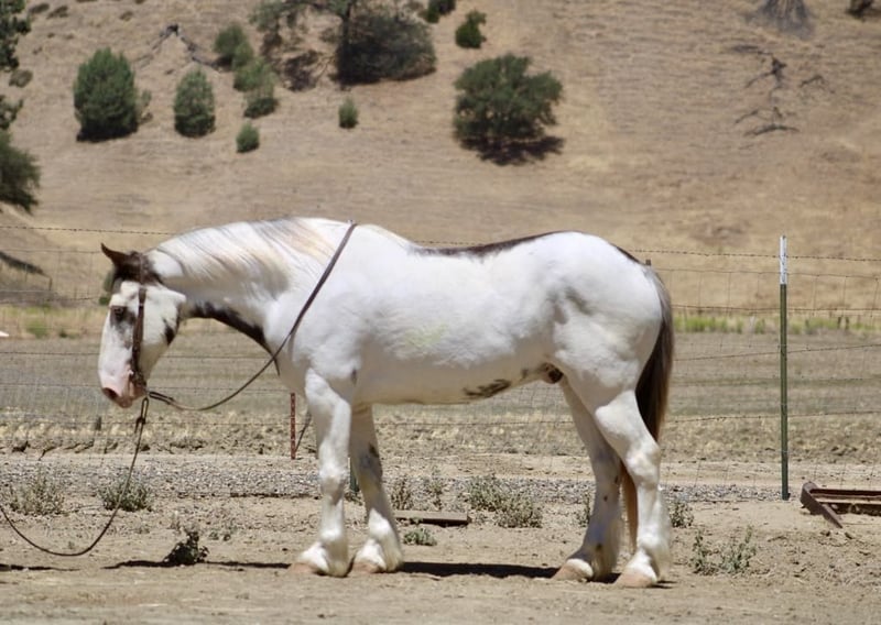 ONLINE AUCTION Place your bids at www.PlatinumEquineAuction.com Starting Bid $3500 Auction ends July 6 2025 Need a new saddle? Check out White Rock Saddles on our website or Facebook! Are you looking for a horse that will turn heads everywhere you go? Meet Finnigan, the cutest paint Gypsy in town. With his roan coat and striking one blue and one brown eye, this 10-year-old stands at a sturdy 14.1 hands and is ready to be your new adventure partner. Finnigan has been a delight to work with, displaying eager-to-please disposition. He excels in the arena, confidently picking up leads, transitioning between gaits, and starting to neck rein with ease. His stop is smooth and he is even starting to turn around and back up effortlessly. But his true passion lies in trail riding – he has been on numerous excursions and has proven to be a reliable and sure-footed companion. From navigating different terrains to crossing water and encountering wildlife, Finnigan takes it all in stride. Aside from his impressive trail skills, Finnigan also excels in obstacle work. He fearlessly walks over tarps, bridges, and even covered wagons. He has been exposed to a variety of new experiences and has handled them all with patience and a willing attitude. He has even been trained to carry flags and tarps, making him an adaptable partner. He has also been ridden in towns and is comfortable around cars and traffic. He ties clips and hauls great no shoes required for his nice strong hooves. Finnigan has been in pasture and stall environments. But perhaps what sets Finnigan apart is his lovable demeanor. He would make a great main trail partner and would also look stunning in English tack. Finnigan has the potential to do it all! He’s friendly, eager to please, and safe. Plus, he loves cookies and bath time! Come meet this mystical boy and see if he’s the perfect partner for your next adventure! Contact Dina at Longhorn Ranch 831-537-1915 in Paicines, CA. Your chariot awaits! ONLINE AUCTION Place your bids at www.PlatinumEquineAuction.com Starting Bid $3500 Auction ends July 6 2025 Need a new saddle? Check out White Rock Saddles on our website or Facebook!
