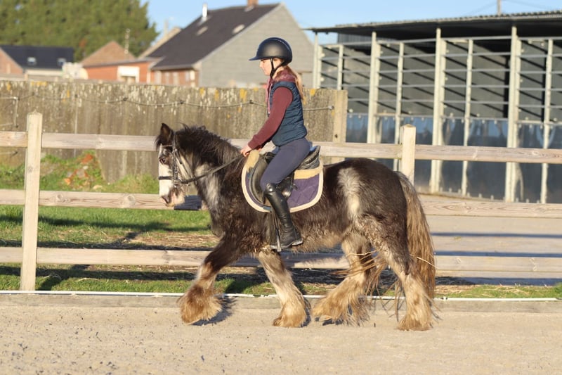 Poney Tinker – couleur spéciale – 4 ans – hongre – 1,28 m Superbe poney Tinker avec une couleur unique et spéciale, âgé de 4 ans, hongre et mesurant 1,28 m au garrot. En manège, il peut être un peu réservé, mais il est très doux et honnête en main. Il maîtrise bien les trois allures et possède un magnifique œil bleu moon, ce qui le rend encore plus exceptionnel. De plus, il s’entend bien avec d’autres poneys et se tient proprement parmi ses congénères. 📞 Plus d’informations ? 0032 475 682 243 🎥 Pour des vidéos : demandez notre site internet.