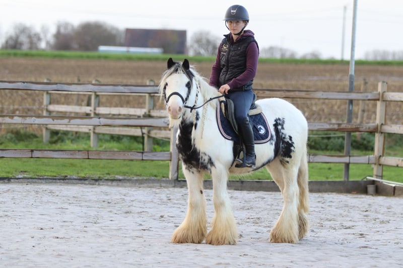 Marcus – Top Brave Tinker Pony Marcus is een prachtige 4-jarige Tinker ruin (1m32) met leuke aftekeningen, volle sokken en een superlief snoetje. Hij komt mooi overeen met andere pony’s en heeft een heel braaf karakter. Tijdens het verzorgen blijft Marcus keurig stilstaan: borstelen, vlechtjes maken, wassen… hij vindt het allemaal prima. In de piste is hij eenvoudig en fijn te rijden. Hij houdt een rustig, stabiel tempo in draf en gaat netjes over naar galop zonder gehaast te worden. Een sprongetje neemt hij ook zonder problemen. Daarnaast geniet hij evenveel van een ontspannen buitenrit. Marcus is bovendien bomproof (zie foto’s en video’s met de bal) en braaf op transport. Een ideale pony voor een recreatieve ruiter. 📞 Meer info: 0032 475 68 22 43 🎥 Video’s verkrijgbaar via onze website (stuur gerust een berichtje)