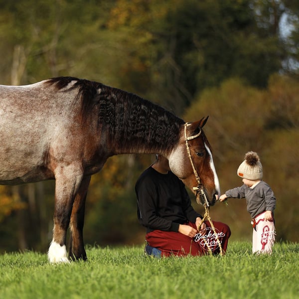 I started my journey in the horse industry in 1995 when I purchased my very first pony at 11 years old. I spent an entire year devoted to training, riding,, and teaching him fun tricks like laying down, sitting, and bowing. I sold him later that year; the feeling of providing a well trained, well behaved, horse was so rewarding that I felt I wanted to continue to share my gift. In 2007, I married my awesome wife Miriam, and we have been blessed with six incredible children (two daughters and four sons) that participate daily with the operation of the farm. What started as myself and a dream has become the full time commitment of my family, and ten employees. The opportunity to share our horsemanship has been so rewarding. In kind, we have been so blessed to learn from professional experts and knowledgeable friends that have voluntarily poured into us their invaluable years of knowledge. Our program has developed, changed, and grown along the way to ensure that we are producing a quality horse that we know we can stand behind. We start by carefully evaluating each horse before purchase. We specialize in quality quarter horses, draft crosses, and also Friesian and Gypsy crosses, from performance to trail riding to leisure. After selection, we take the horse through our groundwork program to get connected with them as individuals. We take them through obstacles and trail ride them, exposing them to anything they may ever encounter. Then, we give the horses a break for up to one month. This allows us to see how the training will stick with them. If they come back in the same place they were before the break we know they are ready to move through the rest of the program and become finished Buckeye Acre Farm horses, learning all of the fun crowd pleasing tricks. We feel we have one of the best soundness guarantees in the business, and we will stand behind that. This has been an awesome journey, and God continues to bless and humble us each and every day. All of us, from our children to our employees, want to provide the best quality horses that you and your families will enjoy for years to come. Over the years we have experienced that the horse market changes, but also that a quality horse is always in high demand. If you see a horse that meets your needs, please reach out to us. I look forward to your call, and to speaking with you personally about your next equine partner. May God bless your day.