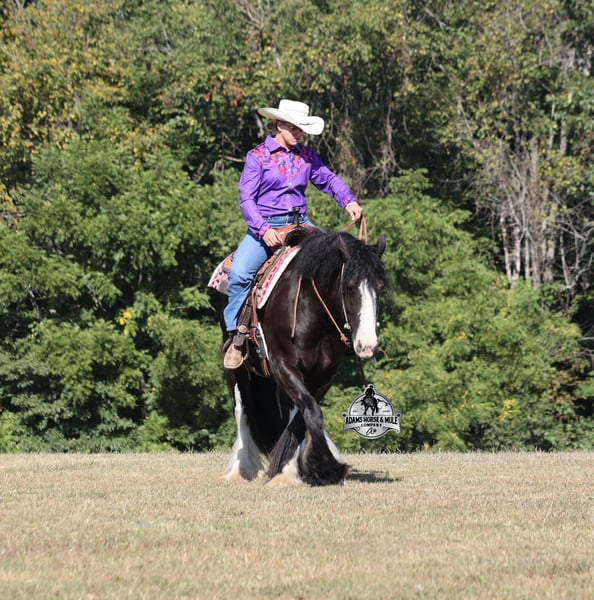 Besuchen Sie unsere Website für weitere Bilder und ein Video www.AdamsHorseAndMuleCo.com. AHAMC ist seit 2005 im Pferdegeschäft tätig und verkauft Pferde über das Internet. Wir haben eine lange Erfolgsbilanz mit Hunderten von zufriedenen Kunden. Wir arbeiten hart daran, Reiter mit den richtigen Pferden zusammenzubringen und sind auf anfängersichere, familienfreundliche Pferde spezialisiert, die von unserer Familie genutzt und überprüft wurden! Wir können den Transport überall in den USA organisieren und freuen uns darauf, mit Ihnen zusammenzuarbeiten. Blazing Arrows ist so königlich und cool wie jedes Pferd, das Sie sehen werden! Er ist ein wunderschöner, schwarzer, registrierter Gypsy Vanner Wallach, der etwa 1,50 m groß ist und bald 5 Jahre alt wird. Arrow hat einen ansprechenden Blick, aber das Beste an ihm ist tiefer als das Auge sehen kann. Arrow ist der beste Freund von jedem, da er Aufmerksamkeit liebt und einen sehr ruhigen Charakter hat. Arrow hat ein Natural Horsemanship-Programm durchlaufen und kennt einige Tricks, wie sich hinzulegen und sich auf sein Hinterteil zu setzen. Er wurde von jedem Mitglied unserer Familie geritten, sogar von unserer 6-jährigen Tochter. Er wurde auf den Straßen geritten und ist verkehrssicher. Arrow ist großartig auf Trails und wird Bäche, Gräben, Baumstämme überqueren und raues, steiniges Gelände bewältigen. Er hat einen sanften Trab, einen SEHR, SEHR schönen, leicht zu reitenden Galopp und einen guten Halt! Er reagiert auf Zügelhilfen und kann problemlos rückwärts gehen. Er wurde verschiedenen Wildtieren wie Rehen, Truthähnen oder anderen Tieren wie Kühen oder Hunden ausgesetzt und wird überall hingehen, wo man ihn hinführt. Er wurde viele Kilometer in den Bergen von Eastern Kentucky geritten und hat jedes mögliche Hindernis auf dem Trail überwunden. Er wird selbst die steilsten Hänge hinauf oder hinunter, über tiefe Bäche, über umgestürzte Bäume und über alle Arten von rauem Gelände gehen, während er immer sicher auf den Beinen bleibt. Arrow ist nicht empfindlich beim Satteln, hat keinen kalten Rücken, nagt nicht und webt nicht. Neben dem Reiten wurde Arrow auch im Geschirr gefahren. Dieser Arrow wird sicher ins Schwarze treffen!!! Bei Fragen können Sie Eric unter 606-308-2461 anrufen.