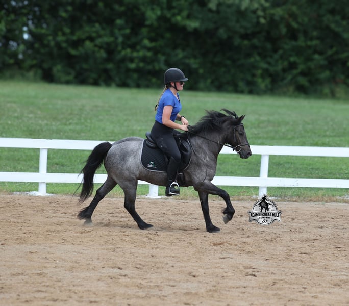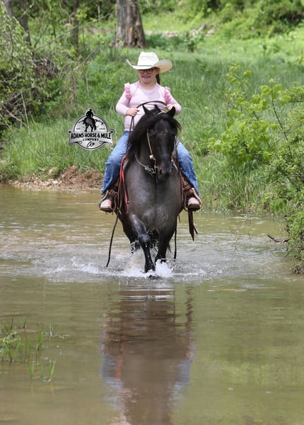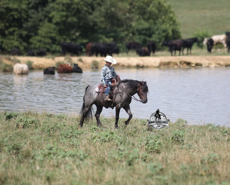 Razz wird am 26.-27. September auf der Best Of The West Horse Sale in Gladstone, NJ versteigert. Sie können online bieten oder persönlich bieten. Es gibt einen Besichtigungstag vor der Auktion oder Sie können ihn vor der Auktion in Mt. Vernon, KY reiten. Razz ist ein 13,2 Hände großer, 4-jähriger Gypsy Vanner Cross, wahrhaftig blauer Roan Wallach und wenn Sie nach einem Pferd suchen, das unzählige Lächeln, Meilen voller Erinnerungen und nur gute Zeiten im Sattel bringt… dann lernen Sie Razz kennen. Razz war den ganzen Sommer über der Lieblingsritt unseres 7-jährigen Jungen und wurde immer wieder getestet, wobei er jedes Mal mit Bravour bestanden hat! Dieser Kerl liebt Aufmerksamkeit und lässt sich gerne verwöhnen! Von Zöpfen bis zu Bädern, er genießt seine Zeit mit den Kindern! Er ist sanft genug, damit die Kinder ihn reiten können, aber robust genug, um einen kleineren Erwachsenen bequem zu tragen. Razz ist ein phänomenales Trail-Pferd und geht überall hin, wo man ihn hinführt. Er wurde an steilen Hängen, über Bäche, Gräben, Totholz, raues, steiniges Gelände… geritten, was auch immer Sie nennen, er kann es bewältigen. Er reitet mit Selbstvertrauen, geht alleine hinaus, reitet vorne oder hinten in der Gruppe und verlässt den Stall ohne Probleme. Razz ist verkehrssicher und wurde durch die Stadt geritten. Er galoppiert schöne Kreise, nimmt die richtigen Gänge, hat einen guten Halt und ist einfach zu bedienen. Neben dem Westernreiten wurde Razz auch Englisch geritten und hat Sprünge überwunden. Er wurde auf der Ranch und durch die Kühe geritten. Razz ist ein großartiges Pferd, das die ganze Familie lieben und viele Jahre genießen kann! Für weitere Informationen rufen Sie bitte 606-308-2461 an.