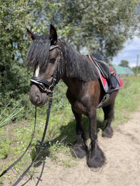 For sale is this stunning 5-year-old Irish Cob gelding with a height of approximately 135 cm. Dandy is an incredibly friendly and loyal companion! He is easy to ride and always fully engaged! He has the patience of an angel and nerves of steel! He is accustomed to overcoming obstacles and loves trail rides—he is very calm and fearless! He has a pleasant and steady go! Super cuddly and people-oriented. The absolute dream pony for children, riding schools, but also suitable as a therapy pony! He knows how to ride in groups and has no problem with it—he can lead, be in the middle, or follow behind— He loves the outdoors and is absolutely reliable both alone and in a group! He comes directly from Ireland and is now waiting for his dream home! Also suitable for riding schools!