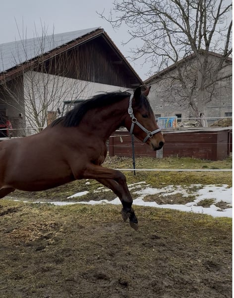 Er war Championatsteilnehmer, ist sehr schmusebedürftig sowie ordentlich und brav im Umgang. Ein sehr kluger Musterschüler! Toller Ausdruck, wunderschöne Aufmachung, sowie eine traumhafte Oberlinie. Er wird später mal ein sehr Vermögendes Reitpferd sein,es bestehen auch Chancen auf eine Körung. Die Stutenfamilie ist bis S-Dressur erfolgreich. Der Verkauf erfolgt aus privaten Gründen.