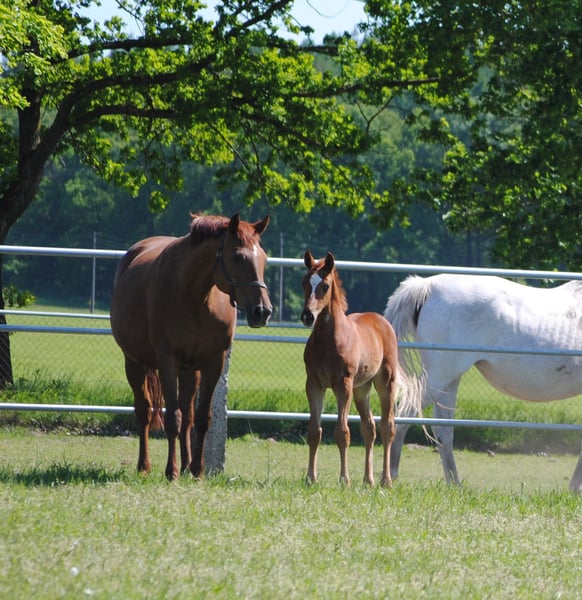 The colt, born on April 5, 2024, is a rarity due to his absolute outcross pedigree and his attractive dark chestnut color alone. He is a son of the Anglo-Arabian premium stallion Noupier x by Duke of Hearts xx and a daughter of the Olympian and World Championship participant in military sport Troupier x. Our "Le Noble TN" is in turn a son of the Pr.St. La Vita TN by Cavallieri xx - Vespucci (Ramzes x line), the full sister of our Pr.H. Le Chevalier TN, the sire was the winner of the performance test and also the winner of his stallion performance test for eventing horses in Marbach. This pedigree, his conformation, correctness and quality of movement led to the highest possible rating at the foal registration, the 3-star premium and the recommendation of the breeding management to raise him as a stallion.