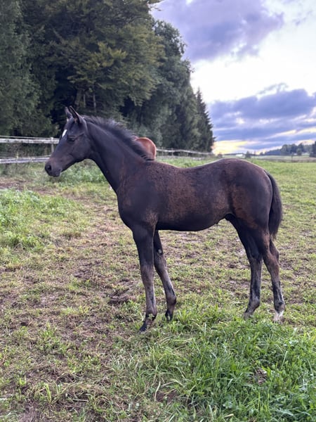 Zum Verkauf steht ein vielversprechendes Trakehner Hengstfohlen, geboren Ende Mai 2025. Dieser schwarzbraune Beau vereint Eleganz und Leistungsbereitschaft und ist sicherlich ideal für den Dressursport geeignet. - Rasse: Trakehner - Geschlecht: Hengst - Geburtsjahr: 2025 - Farbe: Schwarzbraun - Eignung: Dressur - Vater: MEGGLE's Kap Verde - Mutter: St.Pr. u. Pr.St. Donaublume Einer der ganz wenigen Nachkommen des ersten Jahrgangs von MEGGLE's Kap Verde. Kap Verde war strahlender Siegerhengst seiner Körung 2023 und überlegener Sieger seiner Hengstleistungsprüfung. Seine Vollschwester Koh-I-Noor war nicht nur Reservesiegerin bei der Auswahl zur Trakehner Jahressiegerstute, sondern auch die Stute mit der höchsten absolvierten SLP ihres Jahrgangs. Aus dem ersten Jahrgang des Kap Verde gibt es nur eine Handvoll Fohlen. Ein väterlicher Halbbruder dieses Fohlens wurde im Rahmen der Fohlenauktion in Kranichstein für 17.000 Euro an ein renommiertes Trakehner Gestüt zugeschlagen. Die doppelt-prämierte Donaublume war Siegerstute ihrer Eintragung in Schleswig-Holstein und brachte in den letzten Jahren zahlreiche Siegerfohlen. Sie stammt ab vom Hohenstein-Sohn Cousteau und der Elitestute Donaufürstin, die auch schon mit Deinheart einen gekörten Sohn und Reitpferdechampion in Schleswig-Holstein gestellt hat. Donaufürstin entstammt der Donaufamile des Klosterhof Medingen und ist eng verwandt mit dem Bundeschampion Damaschino. Das Fohlen wächst in artgerechter Haltung auf und kennt das Fohlen-ABC. Ein Absetzen kann ab Ende Oktober erfolgen. Standort ist Süddeutschland. Bei Interesse oder für weitere Informationen freuen wir uns über Ihre Nachricht!