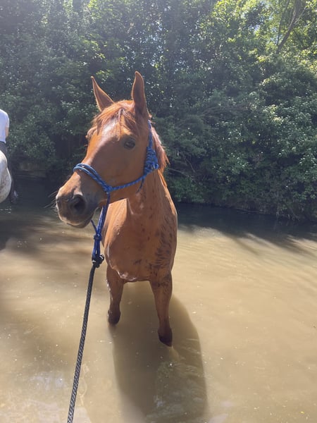 Wir suchen für unsere Stute ein 5**** Zuhause. Sie ist der optimale Freizeitpartner für Pferdemenschen, die nicht täglich in der Halle oder auf dem Platz reiten möchten. Sie ist perfekt für alle, die gerne ins Gelände gehen, lange Spaziergänge machen, Spaß an der Bodenarbeit und an Gelassenheitsparcours haben. Wer sein Kind oder Enkelkind langsam und sicher an den Umgang mit dem Pferd gewöhnen möchte, ist bei ihr genau richtig. Jeder, der einfach eine ganz tolle Begleiterin in der Freizeit sucht, darf sich gerne bei uns melden. Ambitionierte sport-und Freizeitreiter sollten weiterklicken. Ranke ist eine wunderschöne Trakehnerstute und hat wirklich ein Herz aus Gold. Da sie sich, vermutlich schon im Fohlenalter, eine Verletzung am Nackenband zugezogen hat, die sie nicht sonderlich beeinträchtigt, verkaufen wir sie als bedingt reitbar. Sie geht für Ihr Leben gerne ins Gelände (egal ob mit oder ohne Sattel), badet und planscht im Bach. Leicht Arbeit in der Halle, sowie kleine Sprünge unter dem Reiter kennt sie ebenfalls. Dabei zeigt sie sich brav aber temperamentvoll = daher KEIN Anfängerpferd. Sie hat keine Unarten wie Steigen, Bocken, wildes Durchgehen, etc. aber Trakener eben. In der Bodenarbeit zeigt sie sich sehr bemüht alles richtig zu machen und beim Gelassenheitstraining siegt bei ihr immer die Neugier, statt der Angst... 2023 und 2024 hat sie uns 2 bildschöne Stutfohlen geschenkt. Beide bewegen sich toll und sind charakterlich ganz die Mama. Sie steht bei uns mit 3 weiteren Stuten auf der Koppel und ist auch hier sehr sozial und artig. Es handelt sich hier um keinen Notverkauf!!! Bitte nur ernsthafte Anfragen! Bitte kontaktieren Sie mich nur telefonisch (werktags ab 13 Uhr) oder per WhatsApp.