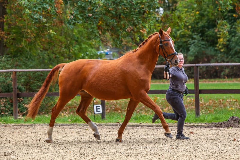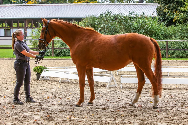 We are offering the Trakehner mare Florencia from the family of Feldmaus O21A for sale. At first glance, she may seem unassuming, but she demonstrates a convincing genetic potential as a broodmare. She has already foaled a foal by an Oldenburg stallion with her previous breeder, and with us, she has produced two Trakehner foals by Mescalero, both registered with premium status. Between her pregnancies, she was ridden as a leisure horse, helping her former owner achieve their riding certification, and she has completed smaller competitions, mastering both dressage and jumping competently. Above all, her trail riding confidence has been exemplary. Whether in a group, alone away from the herd, or entirely on her own, she has been a wonderful companion for rides through forests and fields. When we brought her back into work after her last foal, she was immediately cooperative and well-behaved. Currently, she is not in training, but a further use in breeding is certainly possible—Florencia herself was Reserve Champion at her licensing and boasts an interesting pedigree with the producers Opal v. Polarkreis and Ralf v. Markwart in her background. We are looking for a cozy and caring home where her qualities will be appreciated, as "Flori" is a very gentle and reliable leisure partner. She is somewhat introverted and of the "quieter" type—perfect for peaceful hours with your horse after work. Since she is quite easy to keep in condition, some attention should be paid to her diet. Unfortunately, she has somewhat sensitive hooves (thin soles) and cannot go barefoot. We currently have Duplos, but hoof boots are also an option. The video shows her with one of her Mescalero foals. If you are interested in Florencia, we would be happy to receive a personal message—preferably via WhatsApp or email.