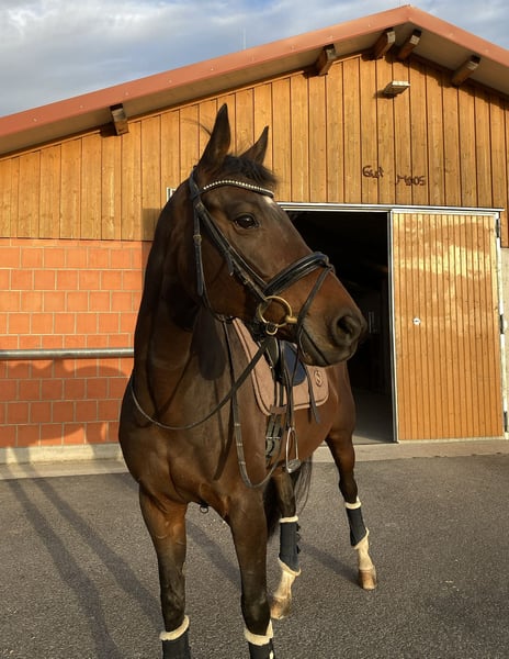 Aufgrund beruflicher Veränderungen suche ich schweren Herzens ein neues, liebevolles Zuhause für meine Stute Lenny. Sie ist nun seit 12 Jahren an meiner Seite und hat mir über die Jahre jeden Tag Freude bereitet, ob beim Reiten oder im Stallalltag. Im Umgang ist sie absolut brav, unkompliziert und sehr lieb. Unter dem Sattel zeigt sie trakehnertypisches Go, bleibt dabei aber jederzeit gut zu handeln und ist immer motiviert, ihr Bestes zu geben. Sie ist in allen Bereichen auf L Niveau ausgebildet, aktuell liegt der Schwerpunkt allerdings in der Dressurarbeit. Aktuell steht sie in einer Paddockbox und genießt in den Sommermonaten Weidegang. Wir kommen ursprünglich aus dem Vielseitigkeitssport, haben das Turnierreiten aber vor Jahren bewusst aufgegeben. Genau das wünsche ich mir auch weiterhin für sie. Ich möchte für sie ein Zuhause finden, in dem sie geliebt, gepflegt und wertgeschätzt wird. Sie wird also nur abgegeben, wenn wirklich alles passt. Platz vor Preis. Ich freue mich über eine Nachricht von Menschen mit Herz und Zeit, die Lenny ein dauerhaftes Zuhause schenken möchten.