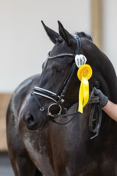 Greta is one of the few daughters of the Schwarzgold son Kronberg, a premium stallion with top-notch genetics on both sides, who emigrated to the USA after a brief breeding career in Germany and is now at the beginning of a promising career in eventing. His few offspring, including the young, highly talented sire Barino, demonstrate excellent hereditary qualities. Greta is registered in the main studbook with consistently high-quality scores and impresses with her wonderful, particularly affectionate nature towards humans, her harmonious conformation with large proportions, and balanced movements that are fluid and dynamic. After a careful and loving upbringing, she is now at the beginning of her riding education. Also a breeding gem: In her first three generations, she combines three main sires with exemplary athletic performance and equally impressive progeny performance: Sixtus, Münchhausen TSF, and Kostolany. Her grandmother Golda Meir was a top mare of rare quality, with numerous successes in major shows and victories and placements in dressage up to class M. Her great-grandmother Georgina holds an exceptional position in the Trakehner population as a full sister to the international breeding legend Gribaldi.