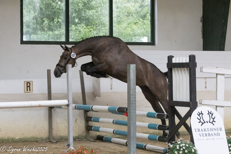 This 4-year-old grey mare boasts an impressive pedigree featuring top-tier eventing bloodlines, including Asagao xx, Duke of Hearts xx, Puschkin ShA, and Parforce. She is equipped with three good basic gaits. In free jumping, she impresses with good bascule, scope, and talent. She is a well-built horse standing approximately 1.65 meters (16.1 hh), with an expected final height of around 1.68 to 1.70 meters. In handling, she is uncomplicated, affectionate, and confident. Her outstanding ancestry and her own talent make her particularly suitable for eventing. The mare has been backed and is already competing over small courses. She has an impeccable character and is a very sweet, people-oriented horse. Current good X-ray results are available. I am happy to send recent videos via email.