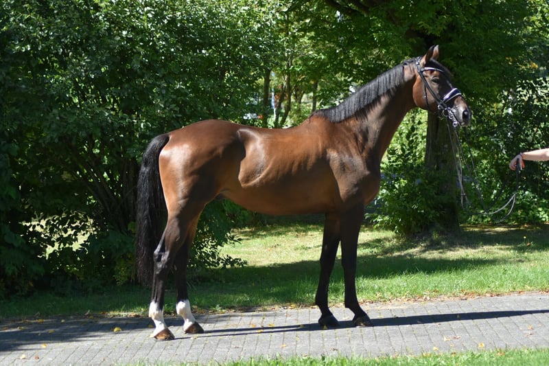 This Trakehner gelding has already placed up to class M and is on a secure path to class S. The gelding is performance-ready and equipped with good basic quality. Great prerequisites for a successful competition career. But even in daily training, this gelding brings a lot of joy. He is well-mannered, affectionate, and enjoys grooming and petting. Feel free to give us a call. We are available for you Monday to Friday from 08:00 AM to 05:00 PM.