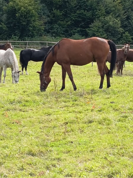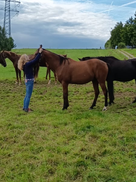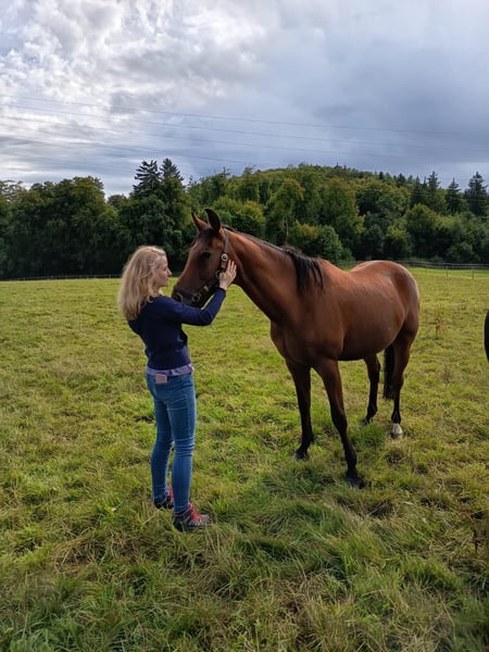 Wir suchen für unseren verschmusten und neugierigen Wallach Speedy (von Herbstkönig) einen erfahrenen Reiter, der ihm ein schönes Zuhause bieten kann. Speedy ist dem Menschen sehr zugewandt, anhänglich und sensibel. Bei der Dressurarbeit ist er motiviert, lauffreudig und möchte alles richtig machen. Er ist bis Klasse L ausgebildet und geht gerne ins Gelände. Auch für gemütliche Spaziergänge ist er zu haben. Aufgrund von Zeitmangel und zwei Jungpferden, steht er momentan auf der Koppel. Da er eine Sehnenverletzung vor ein paar Jahren hatte (völlig ausgeheilt), wird er weit unter Wert abgegeben.