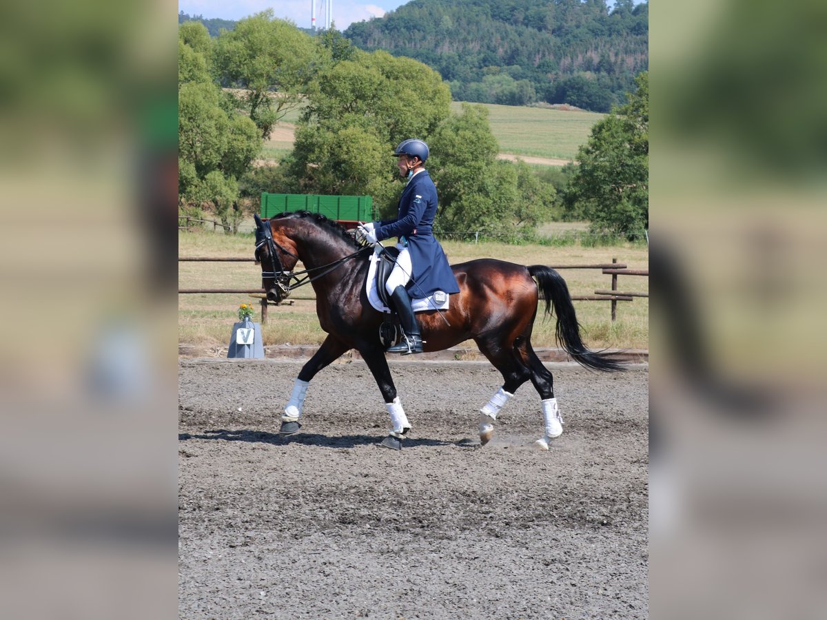 A true gem awaits you - Saalefürst, a 19-year-old professor among horses, is now available for sale. This bay gelding, proud offspring of Saalekönig and Kostolany, combines breed and talent in a unique way. Once a licensed stallion, Saalefürst has made a name for himself in the advanced dressage class - placed and with an impressive performance record. But his true strength lies in his role as a teacher, patiently passing on his knowledge and skills to his rider. Saalefürst is fit and healthy despite his age. A confident and well-behaved rider, Saalefürst not only impresses with his performance, but also with his exemplary character. He is a stylish horse that shines both on the show ring and in daily training. Saalefürst is the perfect choice for all those who are looking for an introduction to show jumping. His wealth of experience and qualities make him a reliable partner for demanding tasks. If you are ready to celebrate new successes with Saalefürst at your side, then don't hesitate any longer. Contact us today to find out more about this remarkable horse. Saalefürst is waiting to break new ground with you.