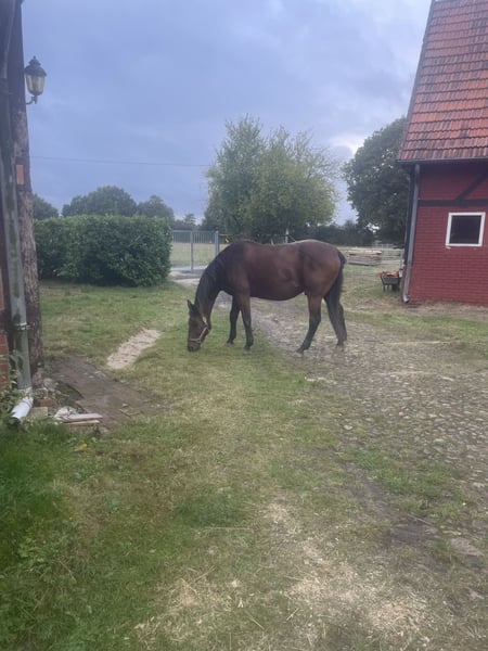 Schweren Herzens möchten wir uns, nach langem Überlegen, von unserem Trakehner Frodo trennen. Frodo ist ein sehr lieber menschenbezogener Wallach, der es praktisch jedem ermöglicht, entspannt zu reiten. Er geht allein und in der Gruppe problemlos ins Gelände. Auch in der Halle und auf dem Platz ist er von jedermann händelbar. Warum möchten wir uns trennen? Wir haben eine gemischte Offenstallhaltung. Frodo meint, er sei der Chef und treibt ununterbrochen die Stuten, um sie gegen die anderen Wallache abzugrenzen. In Wallachgruppen hat er überhaupt kein Problem, da verhält er sich ruhig und besonnen. Auch als einziger Wallach unter Stuten ist er entspannt. Jedoch in der jetzigen Konstellation ist es für alle Beteiligten stressig. Vielleicht sucht ja irgendjemand ein nettes Freizeitpferd und hat auf solch ein Pferd wie Frodo gewartet. Näheres gerne telefonisch unter 0176/62526999.