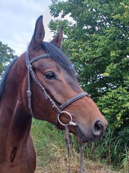 Zum Verkauf steht ein 4-jähriger Wallach von Karakallis aus einer Mutter von Kronprinz - Motley xx. Er wird aktuell schonend angeritten und zeigt sich hierbei brav und gelehrig. Er verfügt über drei sehr gute Grundgangarten. Beim Freispringen zeigt er viel Mut, Vermögen und Übersicht, was ihn sicherlich auch für den ambitionierten Vielseitigkeitsreiter interessant macht. Anfragen bitte telefonisch oder per WhatsApp unter 0157/36343268.