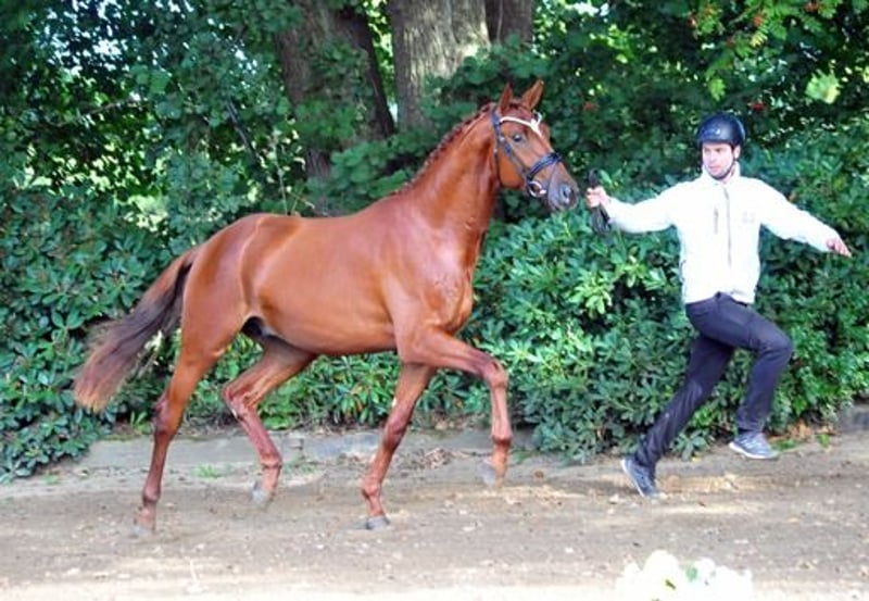 Verhoeven est un impressionnant poulain de 3 ans - longiligne, beau, avec trois bonnes allures fondamentales, il est sensible et doté d'un très bon tempérament. Élevé en tant qu'étalon, il a grandi en groupe. En janvier 2025, il a été castré. Verhoeven est longé et a déjà été monté légèrement. Issu de la famille de juments Hämelschenburger, la Vilja de Julmond, il descend des étalons performants en sport et en reproduction tels que Van Deyk (Grand Prix), Vincent (HLP Classe I), Valerian (Dr. Classe S, Complet et Saut) et Velasquez (Saut Classe M), ainsi que de Valpiano, qui a réussi en S-Dressage, du cheval de complet de Peter Thomsen, Vilano, de la Pr.St. Val d’Isere, qui a réussi en M-Dressage, et de Vicomte et MC Donald, qui a réussi en S-Saut.