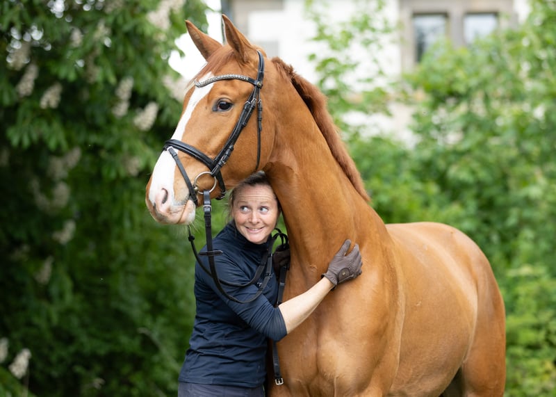 Nachtrot is a particularly intelligent and athletic son of TEMPELHOF, with a striking red coat, a beautiful markings, and an engaging personality that is impossible to resist. The chestnut features a harmonious conformation and three very good, high-quality basic gaits. The combination of the young sire TEMPELHOF with the elite stallions KASIMIR TSF and Herzruf on the dam’s side suggests excellent rideability and athleticism. In training, he proves to be eager to learn and focused. Although still fully in muscular development, he already demonstrates a high level of body awareness and balance. Nachtrot is a raw diamond with versatile talent. Not only his solid basic quality but also his wonderful character lay the foundation for a successful career as a sport horse or a very reliable leisure partner.