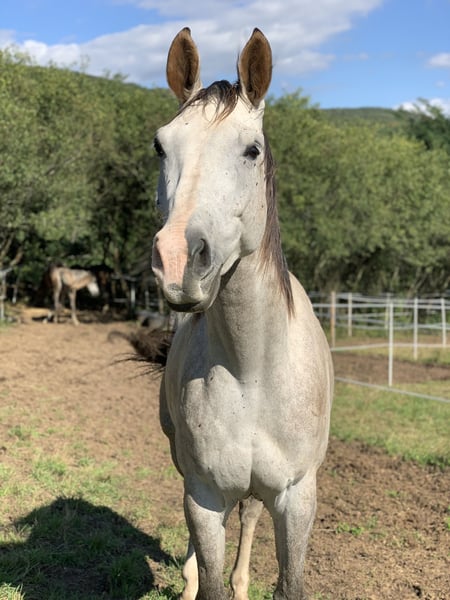 Elegant Czech Warmblood gelding, born in 2020, with a striking grey coat and an impressive height of 180 cm. This well-built and balanced horse is ideal for leisure riding, offering a smooth and comfortable ride for riders of various levels. His calm temperament and reliable disposition make him a pleasure to handle and ride, whether for relaxed outings or light training sessions. Well-ridden and easy to manage, he demonstrates good manners both on and off the arena. A versatile and promising partner for anyone seeking a quality leisure horse with excellent breeding and a noble appearance.