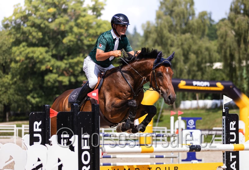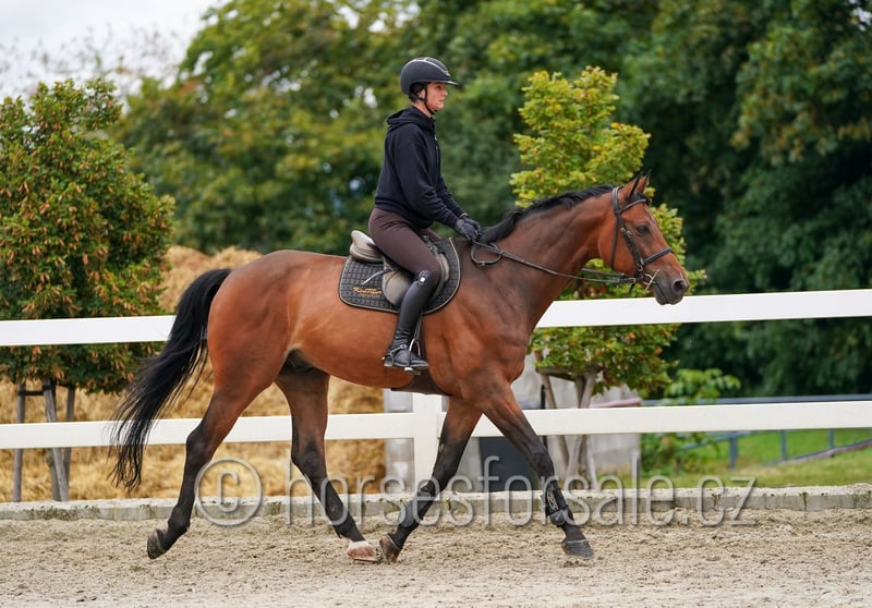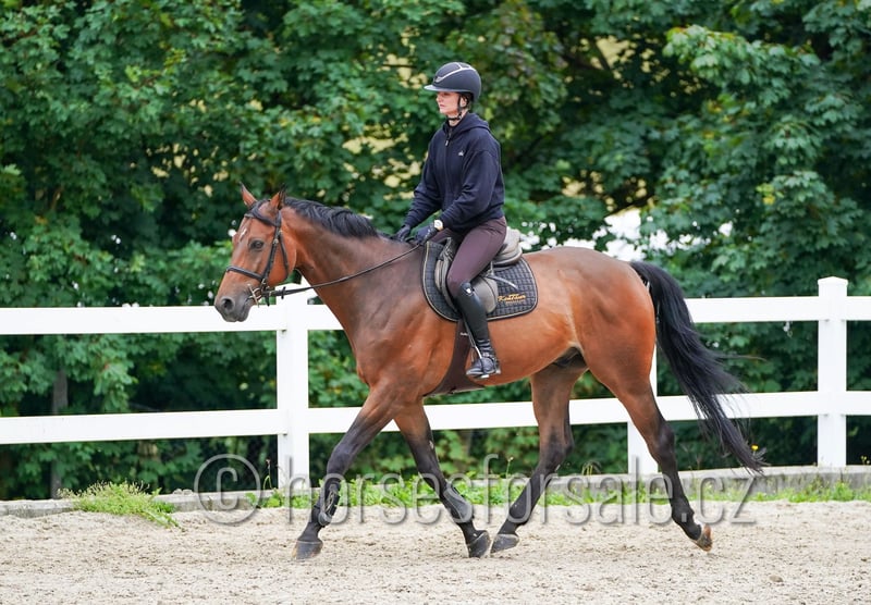 ESSO - experienced show jumping horse for amateurs or juniors, 135 cm course Esso is a perfect show jumping horse with the best character and good rideability. He has experience in courses up to 135 cm but can go higher. He does not look at the jumps and always wants to clear them. He would be ideal as a schoolmaster for amateurs or juniors, always giving his best for the rider. Esso is also well-behaved when hacking out, very friendly and people-oriented in handling. RTG images available (minor issues, but clinically fit). For more information, please contact +420 602 862 723 https://youtu.be/Q-xBFO0kdbs Born: 2017, Height: 172 cm, Pedigree: Empire x Rock n’ Roll Location: 45 minutes from Prague, Czech Republic, transport possible. *** more horses at www.verkaufspferde.cz ***