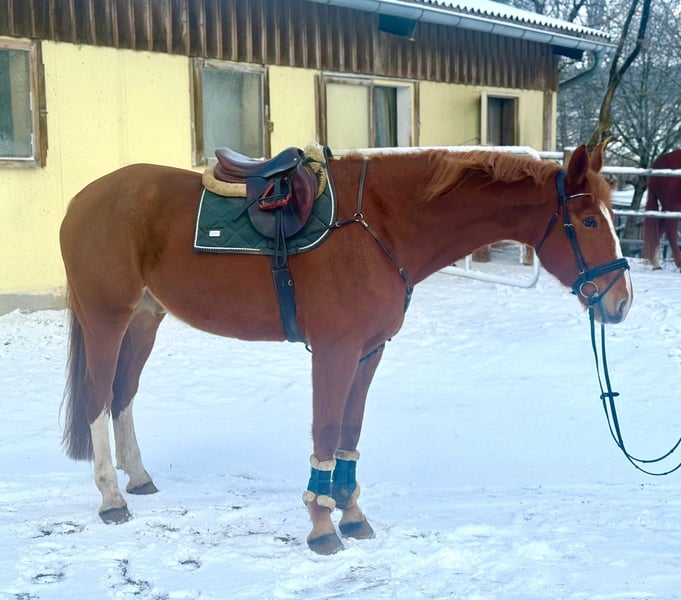 Dieser beeindruckende Wallach nach Henkie x Jazz wurde 2018 geboren. Mit seiner stattlichen Größe von ca. 180 cm deckt er auch größere Reiter perfekt ab. Vom Charakter ist dieser Fuchs sehr unkompliziert und brav. Auch beim reiten gibt es absolut nichts zu beanstanden. Dieses doppelveranlagte Pferd wurde schonend angeritten und gut ausgebildet. Auch das reiten draußen im Gelände ist dem Wallach nicht fremd. Wir könnten uns dieses Pferd auch gut als Voltigierpferd vorstellen. Selbstverständlich ist der Wallach gesund und frei von Unarten! Weitere Infos gerne per WhatsApp oder telefonisch unter: 00436603632373 Standort: Pelmberg 15/ OÖ Besichtigung und Probereiten gerne nach Terminvereinbarung! Der Transport des Pferdes kann gerne übernommen werden