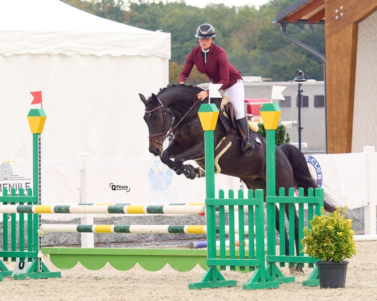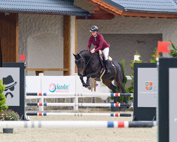 Nom : Veni Vidi Vici Née : 2019 Sexe : Jument Taille : 1,63 m Niveau : Entraînement – 115 cm, Concours – 110 cm Localisation : Bucarest, Roumanie Prix : Sur demande Description : Veni Vidi Vici est une jument douce et volontaire, dotée d’un mode de déplacement naturellement actif. Elle possède une personnalité agréable et motivée — toujours à l’écoute de sa cavalière et donnant le meilleur d’elle-même. Actuellement en progression jusqu’à 115 cm à l’entraînement et en compétition à 110 cm, elle montre un potentiel évident pour évoluer en toute confiance vers 125–130 cm avec la bonne cavalière. Elle n’est pas une monture pour débutants, mais constitue un partenaire idéal pour une cavalière amateur expérimentée ou une cavalière souhaitant développer ses compétences, notamment celles qui apprécient un modèle dynamique, avec un rythme naturel et de l’enthousiasme. Son mouvement est expressif et souple, ce qui la rend adaptée non seulement au saut d’obstacles, mais aussi aux amateurs qui aiment le travail en dressage ou souhaitent combiner les bases du dressage avec le saut. En épreuves de vitesse, elle brille vraiment — courageuse, rapide et naturellement efficace entre les obstacles. Veni Vidi Vici serait une partenaire idéale pour une jeune cavalière ou une cavalière motivée à la recherche d’une jument douce, réactive et pleine de potentiel pour évoluer avec elle. Un caractère charmant et un véritable plaisir à avoir en pension. 🐎✨