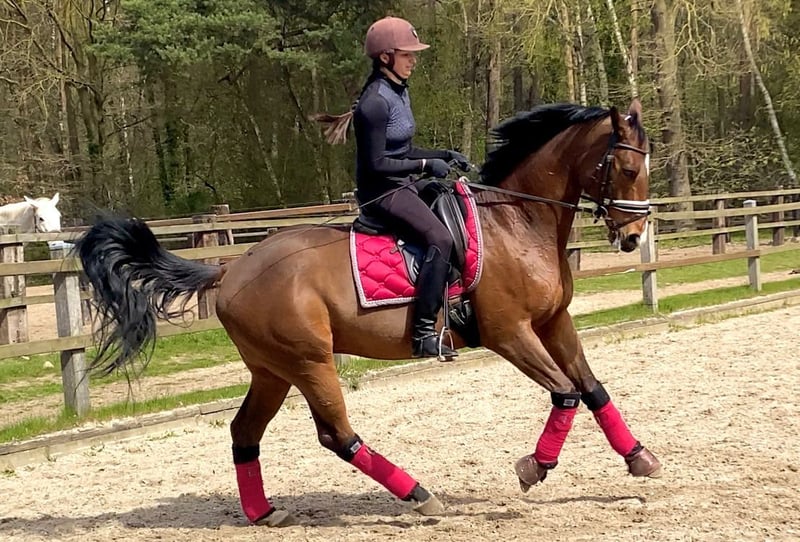 Ein neunjähriger Wallach mit einem raumgreifenden Schritt,, schwungvollem Trab und gutem Galopp steht zum Verkauf. Hohot ist sowohl in der Reithalle als auch außerhalb des Reitplatzes absolut zuverlässig und daher sowohl für erfahrene Reiter, als auch für Anfänger gleichermaßen geeignet (er wird gelegentlich von einem elfjährigen Kind geritten). Bei der Arbeit ist er stets mit vollem Einsatz dabei. Er beherrscht alle Seitengänge im Schritt, Trab und Galopp (Renvers und Travers ) einwandfrei. Im Galopp beherrscht er den fliegenden vierfachen Galoppwechsel. Sein Ausbildungsstand ist derzeit L/M. Das Pferd lässt sich problemlos von Hufschmied und vom Tierarzt behandeln. Auch beim Verladen hat er keine Probleme. Bisher sind keine gesundheitlichen Probleme bekannt. Das Video zeigt das Pferd ohne Hufeisen! Für weitere Informationen kontaktieren Sie uns bitte über WhatsApp +49 152 55816212