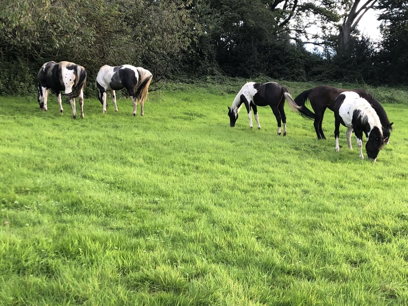 Unbearable Chic, dit Bartl, est un étalon qui ne laisse rien à désirer. Il est approuvé comme étalon primé et homozygote pour Tobiano. C'est pourquoi nous garantissons 100% des couleurs. Jusqu'à présent, uniquement des poulains en noir et blanc ou en blanc dark brown. Il est d'un caractère doux et équilibré et le transmet à ses enfants. Avec sa taille de 153 cm, il représente l'ancien type de canne avec une forte musculature et un bon fondement, il court sans difficulté sans ferrure. Formé au reining, il est monté comme cheval de loisir et de randonnée. Lors d'une traversée des Alpes en solo, sans autres chevaux, il a traversé sans problème un tunnel en pleine circulation. Il est au pré avec sa jument et fait tout simplement plaisir à manipuler. Vous allez adorer !