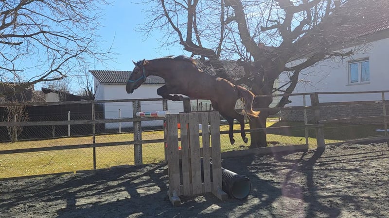 Mare... Future prospect for show jumping! Mare with jumping bloodlines Come One B was born in June 2023 and is a very friendly and affectionate mare with lots of charm and a fine temperament. She consistently behaves well and is uncomplicated in daily handling. Farrier, grooming, leading – all no problem. She is regularly dewormed, vaccinated, and well cared for. On her sire’s side, she carries excellent jumping bloodlines: her father, Color, is a son of Cornetto DB Z, who in turn is a progeny of the world-renowned Cornet Obolensky – one of the most influential sires in international show jumping. Her pedigree stands for talent, technique, and an excellent attitude over fences. Through her dam, Tűzgalamb xx, she inherits valuable Thoroughbred blood, making her a modern, sportily elegant young horse with a lot of heart and endurance. Come One B already shows great enthusiasm for jumping, combined with good technique, awareness, and natural caution. She is still growing and is developing into a typey, performance-ready mare with potential for show jumping or breeding. A lovely, eager-to-learn young lady with excellent prospects for the future – well-behaved, attentive, and very people-oriented. Due to house renovations, she is being offered at a price well below her value. Location: 7502