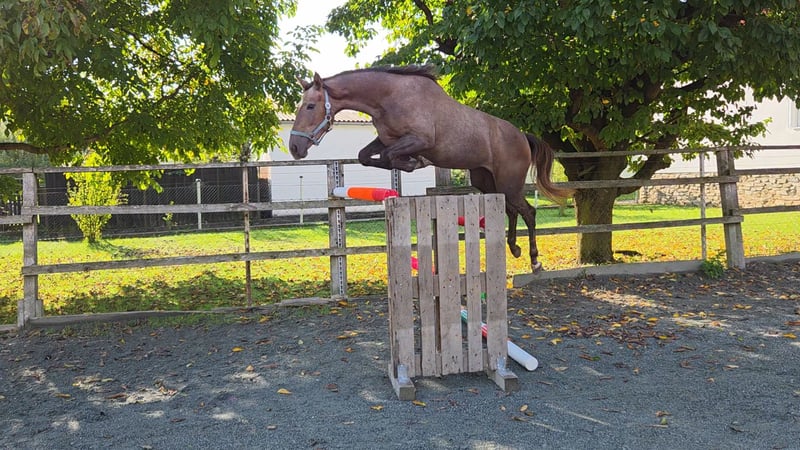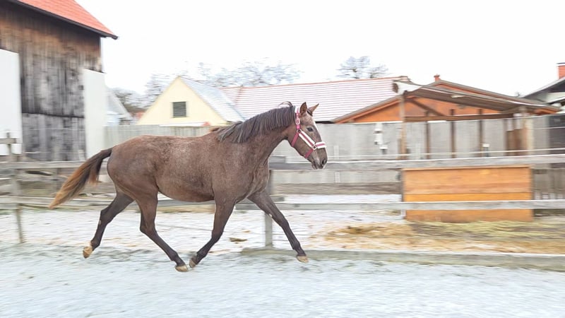 Come One B is a very affectionate and charming mare born in June 2023, with a gentle character and a strong bond to people. She consistently behaves well, is uncomplicated, and remains calm and resilient in daily handling. She is easy to groom, lead, and shoe. She is regularly dewormed, vaccinated, and well cared for. On her sire’s side, she boasts excellent show jumping bloodlines: her father, Color, is a son of Cornetto DB Z, who in turn is a progeny of the world-renowned Cornet Obolensky – one of the most influential sires in international show jumping. This line is known for power, technique, and a superb attitude over fences. Her dam, Tűzgalamb xx, brings valuable full-blooded Thoroughbred blood into her pedigree, making her a modern, sportily elegant young horse with a lot of heart and endurance. Come One B already shows great enthusiasm for jumping, combined with good technique, awareness, and natural caution. She is currently still growing and developing into a typy, performance-oriented mare with potential for show jumping or breeding. A sweet, eager-to-learn young lady with excellent prospects for the future – well-behaved, attentive during work, and very people-oriented.