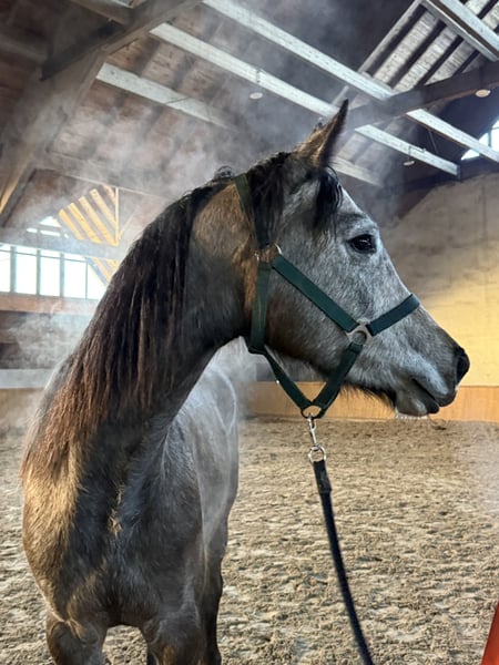 Zum Verkauf steht eine elegante und talentierte ungarische Sportstute, geboren im Jahr 2022. Das schicke Schimmelpferd beeindruckt durch ihr edles Erscheinungsbild und ihre vielversprechenden Springfähigkeiten. Mit einem Stockmaß von 163 cm bietet sie die perfekte Größe für ambitionierte Reiterinnen und Reiter, die auf der Suche nach einem zukünftigen Springpartner sind.