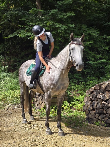 Brave, talented mare from Hungarian breeding for sale ONLY TO EXPERIENCED HANDS Up for sale is a promising mare from Hungarian breeding, who will turn eight years old in 2026. She impresses with her balanced temperament and pleasant character. She is very well-behaved, human-oriented, and uncomplicated in handling—whether grooming, leading, or during daily stable routines. She always remains calm and cooperative but prefers to have her horse friends nearby. The mare has been dewormed, vaccinated against tetanus, and is very good with the farrier. Currently, she is barefoot due to a break I took from riding. In summer 2025, she was gently backed and was able to demonstrate her talent and willingness to learn. Prior to that, she was not heavily worked, which makes her fresh, motivated, and physically unspoiled for her age. She has excellent potential for further training and development. She still requires targeted support in all disciplines! Thanks to her solid foundation, she is ideally suited for riders seeking an honest horse that can be gently promoted—whether for leisure riding or with sporting ambitions. A horse with heart, calmness, and potential, looking for a loving new home. I am only offering her for sale because I do not have enough time for her and she needs more work and training. Clinical health check from August 2025 available, along with X-rays of the back and neck.