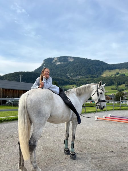 Herzlich willkommen! Kurze Info über mich. Ich bin im Reitstall bei meiner Familie in Vorarlberg aufgewachsen, 2007 habe ich die Landwirtschaftliche Fachschule in Hohenems mit dem Facharbeiter abgeschlossen. Mit 8 Jahren habe wir (ich und meine Schwester) unser eigenes Pony bekommen. 2019 habe ich mir den Wunsch vom eigenen kleinen Reitstall mit Reitplatz und Koppeln erfüllen können. Unsern Hof umfasst ein Wohnhaus mit 2 Ferien- Appartments. Wir bieten unseren Gästen Reitunterricht/ Ausritte an. Derzeit sind wir im Besitz von 4 Pferden. Zwei Haflingerpferde und 2 Warmblutpferde (Zucht) Meine Leidenschaft ist die Pferdezucht und die Teilnahme an Sportbewerben im Ländle. Wir haben zwei tolle Stuten mit sehr interessantem Pedigree und TOP Charakter! Wir legen großen Wert darauf, dass unsere Pferde "klar" sind, das heißt, von Amateur- Reitern im Gelände und auf dem Reitplatz mit Spaß und Leichtigkeit geritten werden können. Die Pferde werden regelmäßig von mir selbst ausgebildet und trainiert, damit dies möglich ist! Sehr stolz bin ich auf unseren Nachwuchs! Fürstin Pasquina Österreichisches Warmblut, geb. 2008, Stkm. 168cm (Duino x Donnerschwee x Fürst Heinrich) tragend für 2023 Österreichische Warmblutstute (Zivatar x Koppany x Burggraaf) Good Girl 2, geb. 2018, Schimmel, Stkm. 177cm, tragend von Fürst Romancier, wir derzeit von meiner Tochter (10 Jahre!) problemlos auf dem Reitplatz in allen drei Grundgangarten geritten.