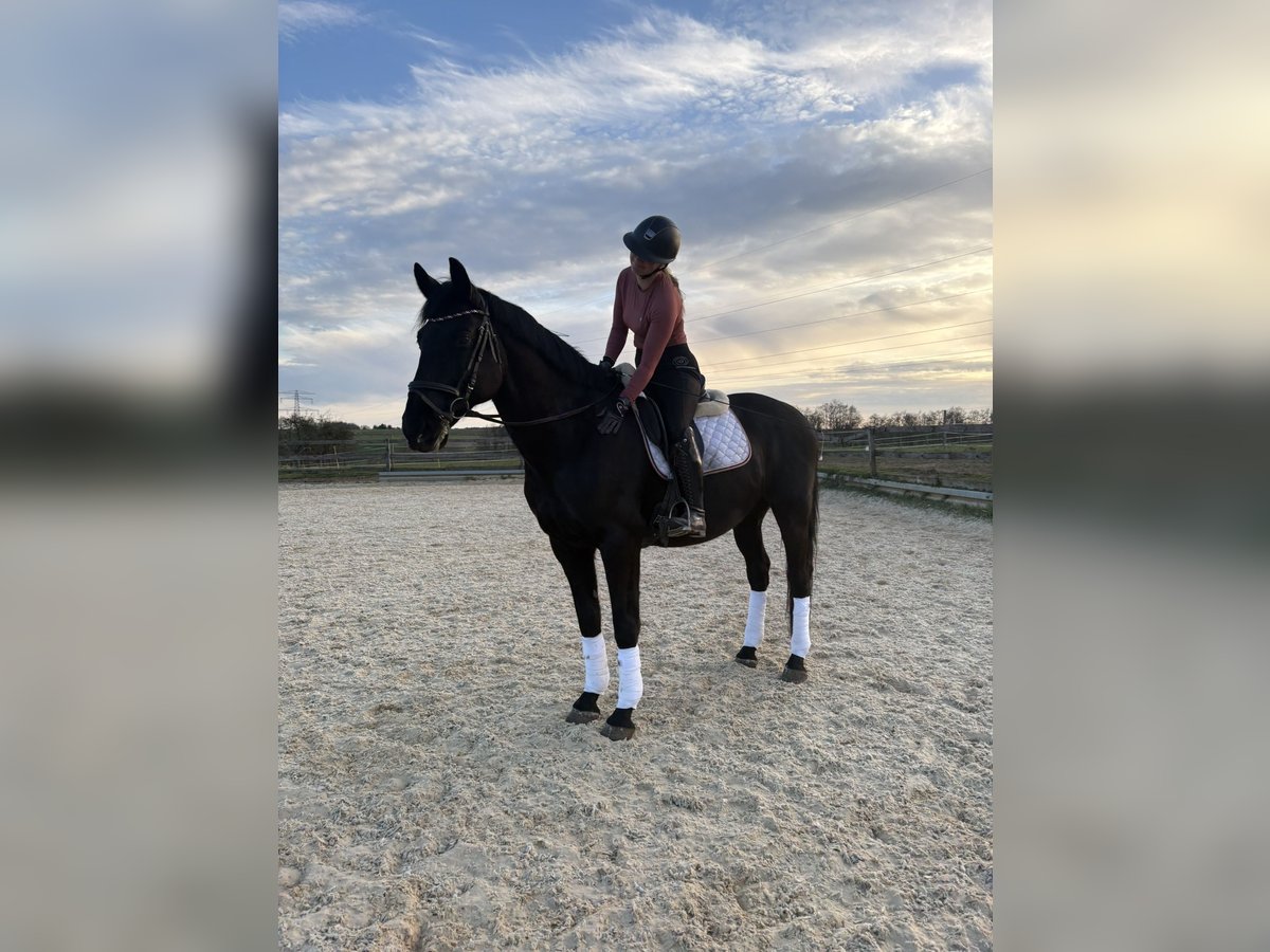 Zum Verkauf steht unser 2015 geborener Nonius Wallach „Blacky“ (liebevoll auch „Björn-Maggus“ genannt) mit einem Stockmaß von ca. 1,65 m. Blacky ist ein kräftig gebautes, stabiles Pferd, das seinem Reiter ein sehr angenehmes und sicheres Gefühl vermittelt. Durch seinen Körperbau deckt er auch größere oder schwerere Reiter gut ab und eignet sich damit ideal als verlässlicher Freizeitpartner. Unter dem Sattel überzeugt er mit bequemen, gut zu sitzenden Gangarten und einer soliden Ausbildung auf E-Niveau. Er arbeitet motiviert mit und macht sowohl in der täglichen Dressurarbeit als auch in der Bodenarbeit viel Freude. Er kennt Longe, Doppellonge und Freiarbeit und zeigt sich hier aufmerksam und lernwillig. Im Springen ist er brav und ehrlich, neigt jedoch dazu, zum Sprung hin etwas stärker zu werden. Aufgrund seines stabilen Körperbaus sehen wir ihn nicht im regelmäßigen Springeinsatz, sondern eher als vielseitiges Freizeitpferd mit gelegentlichen kleinen Sprüngen. Im Gelände war er bisher brav unterwegs, benötigt jedoch noch einen Reiter, der ihm Sicherheit gibt, da ihm hier einfach noch Routine fehlt. Charakterlich ist Blacky ein sehr verschmuster, menschenbezogener und kinderlieber Wallach, der die Zeit mit „seinem“ Menschen genießt. Im Umgang zeigt er sich sensibel und braucht eine ruhige, klare Führung, an der er sich orientieren kann. Mit der passenden Bezugsperson ist er zuverlässig und wird auch von Jugendlichen geritten. In der Herde ist er verspielt und eher ranghoch. Daher wünschen wir uns für ihn eine Haltung im Offenstall oder eine Box mit ganztägigem Paddock und ausreichend Sozialkontakt. Wir suchen für Blacky einen Menschen, der Freude daran hat, sich mit ihm zu beschäftigen, ihm Sicherheit gibt und eine vertrauensvolle Partnerschaft aufbauen möchte. Er ist kein „reines Anfängerpferd“, aber ein toller Partner für ambitionierte Freizeitreiter, die ein ehrliches, angenehmes Pferd zu schätzen wissen.