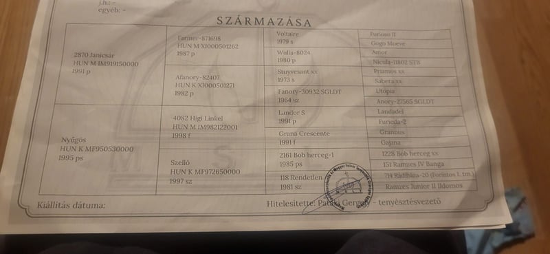 For sale is a 5-year-old, 170cm father:ünnep( justboy ) maternal:direkt janicsar - voltaierX higi linkel szer granus healthy, gelding , trained up to and jumping. Good-natured, studious. He travels easily and behaves very well during veterinary examinations. Extremely cuddly, human-centric. With other horses, not dominant. It can also be a perfect companion for more skilled youth or amateur riders, it is recommended for complete beginners, it can even be a first horse. Regularly vaccinated and manicured. It can be viewed at any time by appointment, and can be tried out if required. If you need more information, please feel free to send pictures and videos. the horse is in Hungary, but transportation is not a problem, wherever it is sent in the world 🌏✈️🛳🚚🚛