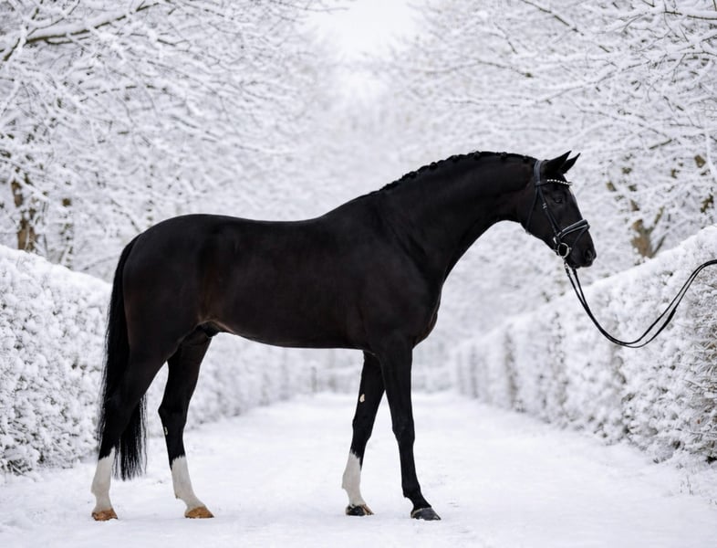 2020 born, 168 cm tall, elegant black Hungarian gelding with a top character This exceptionally elegant Hungarian sport gelding (5 years old, 168 cm) impresses with his noble appearance and powerful, expansive movements. His expressive build and jet-black coat make him a true eye-catcher. He has a balanced, friendly temperament, is well-behaved in handling, and is ideal for ambitious amateurs as well as beginners. He is fully backed and is familiar with both arena work and trail riding. The gelding is completely healthy and has a current veterinary health certificate. Worldwide transport can be arranged with reliable, professional partners. Contact: +36 30 756 7214 (available via WhatsApp)