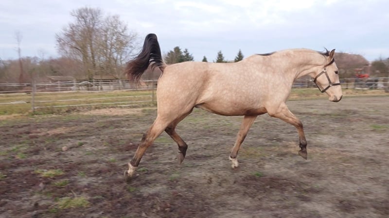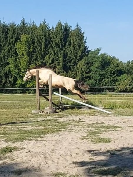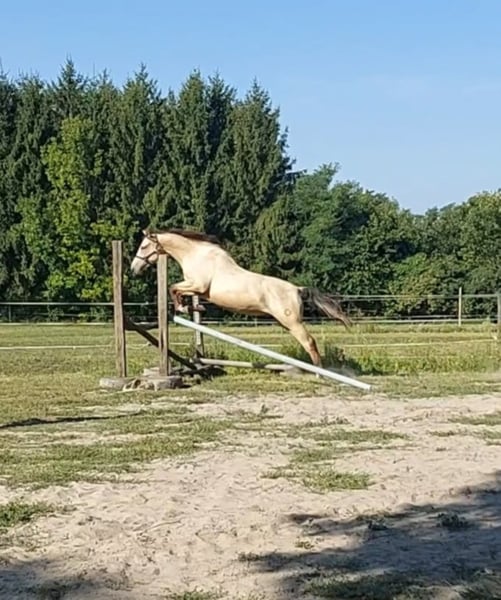 Puszedli will be 3 years old in spring (2022). It is falbe (buckskin) and can be sold directly from the breeder. Father is Páholy - jumping horse in class S. He has not yet ridden in, but goes on the lunge, very well-behaved and diligent. 30 years in the service of horse breeding! We have several references in the EU!