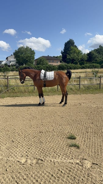 Aufgrund von privater Veränderung werde ich meinem 6 jährigen Wallach leider nicht mehr gerecht weshalb ich mich sehr schweren Herzens -wenn alles passt- ihm zuliebe entscheide ihn in aller beste Hände zu geben. Er ist ein tolles Pferd und will gearbeitet werden. Vielseitiges Training (Dressur, Springen, Gelände) wäre wünschenswert. Er kennt Boxen Haltung sowie Offenstall. Er wird nicht in reine Boxen Haltung abgegeben, da langweilt er sich (er koppt / webt nicht). Am liebsten wäre es ihm viel draußen sein zu können. Er ist brav beim Tierarzt, Schmied und geht problemlos in den Hänger. Er ist pflegeleicht was die Fütterung und Haltung mit anderen Pferden angeht. Verträgt sich mit Stuten und Wallachen. Ich gebe ihn nur ab wenn alles passt und er in fördernde Hände kommt. Ansonsten darf er die nächsten Jahre einfach nur Pferd sein.