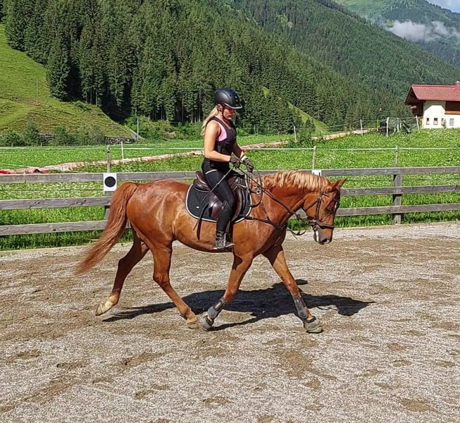Monte ist ein verschmuster und liebevoller Fuchswallach. Mit seinen schwungvollen und elastischen Trab und einer guten bergauf Galoppade, gibt er den Reiter ein super Reitgefühl. Er ist sehr leicht in der Hand und bemüht sich immer zu gefallen. Am Sprung hat er ziemlich viel Go. Deswegen braucht er in dieser Diziplin einen Reiter der schon mehr Erfahrung mitbringt. Momentan ist er barhuf. Er ist schmiede - und verladefromm und wurde regelmäßig entwurmt und geimpft.