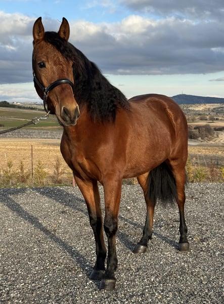 Afortunado is a stunning young PRE stallion with full registration and a compact, baroque type that immediately captures everyone's attention. With his expressive face, naturally striking “eyeliner” eyes, and an incredibly charming expression, he looks like a horse from a fairy tale – and is also extremely photogenic. This young stallion impresses not only with his extraordinary appearance but also with his very gentle, human-oriented character. Tamar is very friendly, calm, and easy to handle in daily interactions, and already shows motivation and a willingness to learn during work. • Purebred Spanish Horse (PRE) with full papers • Stallion • Born: July 2023 • Current height: approximately 1.50 m (15 hh) • Expected final height: approximately 1.55 m (15.2 hh) ✔ Clear X-ray images available ✔ Piroplasmosis negative ✔ Already backed ✔ Extremely sweet and gentle nature ✔ Very easy to handle ✔ People-oriented and motivated to work His particularly sought-after size in XXL pony / small horse format makes him especially interesting. Many riders look for a more compact horse with presence, strength, and elegance, which Afortunado offers. Afortunado combines baroque beauty, an excellent character, and a rare size – a truly exceptional opportunity to acquire a PRE with this unique combination of look, temperament, and stature. 📍 Location: Spain 📩 Feel free to contact us for videos and more information 🚚 Worldwide transportation can be arranged