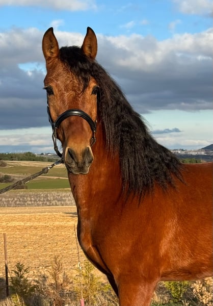 Afortunado es un hermoso y joven semental PRE con papeles completos y un tipo compacto de estilo barroco que capta todas las miradas de inmediato. Con su rostro expresivo, sus ojos con un sutil efecto de "delineador" natural y su expresión increíblemente encantadora, parece un caballo de un cuento de hadas, además de ser muy fotogénico. Este joven semental no solo impresiona por su extraordinaria apariencia, sino también por su carácter muy cariñoso y cercano a las personas. Tamar es muy amigable, suave y fácil de manejar en el día a día, y ya muestra motivación y ganas de aprender durante el trabajo. • Pura Raza Española (PRE) con papeles completos • Semental • Nacido: 07/2023 • Altura actual: aproximadamente 1,50 m • Altura final esperada: aproximadamente 1,55 m ✔ Radiografías limpias disponibles ✔ Negativo en piroplasmosis ✔ Ya montado ✔ Carácter extremadamente amable y suave ✔ Muy fácil de manejar ✔ Cercano a las personas y motivado para trabajar Su tamaño, muy solicitado en formato XXL pony / pequeño caballo, es especialmente interesante. Muchas jinete buscan un caballo compacto con presencia, fuerza y elegancia en esta talla. Afortunado combina belleza barroca, un carácter excepcional y una talla poco común — una oportunidad verdaderamente especial de adquirir un PRE con esta combinación de apariencia, temperamento y tamaño. 📍 Ubicación: España 📩 No dude en contactarnos para videos y más información 🚚 Transporte mundial puede ser organizado