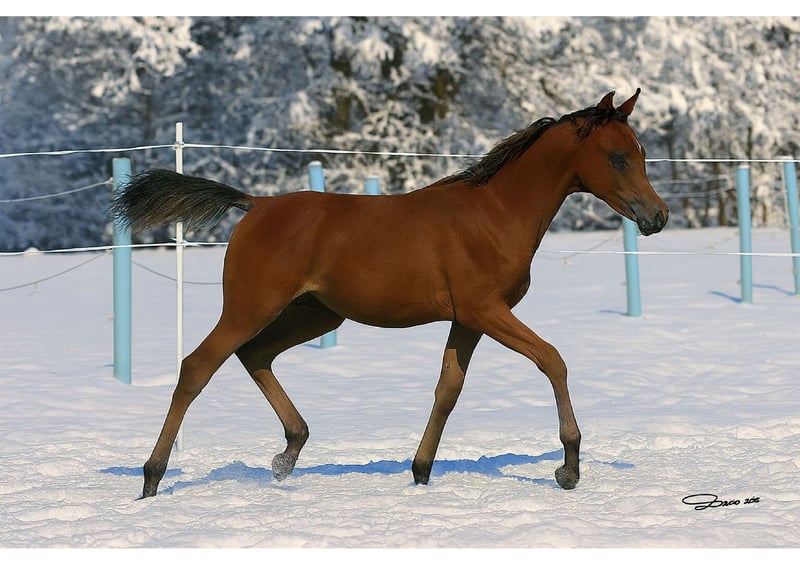 A stylish brown colt "HAG-Jamiro", born 03/2025, Sire: Juwelo O (Russian/Egyptian), Dam: Wasima von Eryks (Polish). Jamiro has a very athletic, correct build for a future sport or leisure horse. He lives in a paddock, has been dewormed multiple times, will be vaccinated before weaning, and has VVÖ papers. His parents are ridden. If you are interested or need further information, I am happy to assist you. Don’t miss this opportunity to welcome an exceptional purebred Arabian into your family! Just come and take a look. Price negotiable.