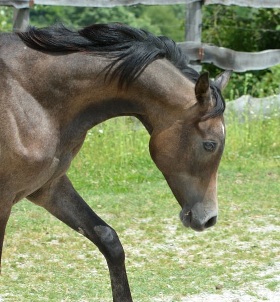 Solkan is a wonderful, nearly two-year-old purebred Polish stallion with great potential. He has a very strong and compact build, excellent conformation and hooves, and moves beautifully. His temperament is very human-oriented and curious. He comes from a highly successful mare line in Gallop, making him an ideal candidate for a future sports career. He would also be very suitable as a new family member for someone looking for a versatile Arabian horse. With his conformation and pedigree, he is also suitable as a breeding stallion. He can be castrated upon request. More information about him can be found on our website: https://vineyard-arabians.com/index2.php?option=pedigree&lang=en&id=71&up=for_sale