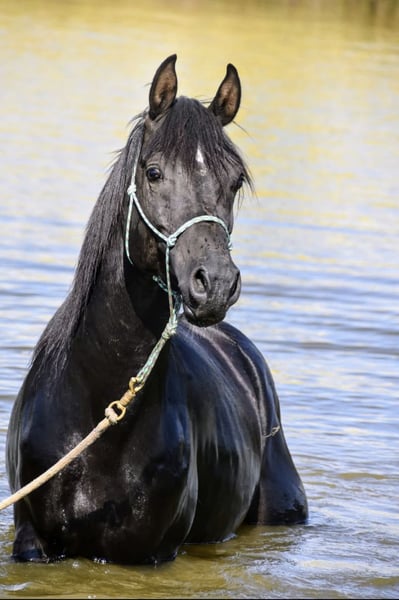 **𝐋𝐞𝐯𝐚𝐧𝐭𝐞 𝐚𝐥 𝐀𝐥𝐬𝐚𝐧** Heterozygous Black Arab Stallion Clear CA SCID LFS PSSM1 8 years old in August 2025 By Primus S x Lady Sharon - born in Italy at Al Alsan Arabians 🇮🇹 A beautiful pedigree! Free of blood Magic Magnifique Height 1.55m Sold, regretfully due to rearing reorientation 2025 breeding card obtained Very fertile stallion Transmits his super character and his superb dish regardless of the mare, even with large heads Several foals visible (both purebred and crossbred: Boulonnais, Spanish, Barb... ) Produced in purebred Arabian, DSA, AA, purebred Boulonnais, bardot, and OC Up to date on vaccinations for flu, tetanus, and rhino Dewormed Seen by the dentist in February 2025 - wolf teeth removed in 2022 Annual osteopathic manipulation Perfectly trained stallion in hand, breeds in hand with an ethological halter Backed since summer 2023, ridden in an ethological halter, mainly on trails, participated in 1 TREC outing in October 2023 Rides alone, practical, comfortable, reliable horse, goes anywhere, very close to humans, respectful of fences (fenced in a temporary paddock on the day of TREC with electric fencing) Participated in the Albi Horse Show at the end of March 2024, perfect behavior! Comfortable gaits, not dynamic Extroverted left brain: very playful, learns very quickly, and loves novelty Elegant, charismatic, showy, compact, beautiful model Lives in herds year-round, well-balanced Excellent health, easy to maintain Barefoot forever Rides and travels easily in a van Visible in the 81 - Occitanie, France Available Subject to VAT Facebook page under his name Levannte al Alsan
