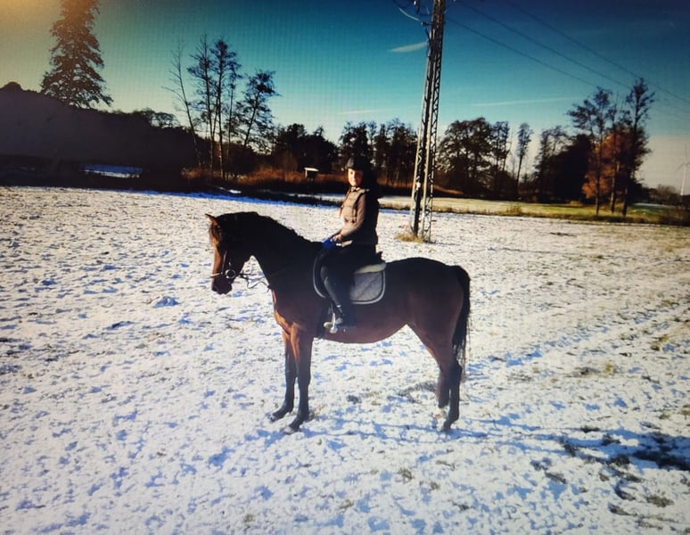 Zum Verkauf steht die 9-jährige Halbaraber-Stute El Luisa. Geb:16.06.2016 Mutter: Latina WS ( Vater: Landrebell / Muttervater: Tiro) Vater: El Montasar ox (Vater: El Nabila B ox / Muttervater: Neman ox) El Luisa ist in allen drei Grundgangarten geritten und kennt das Reiten in der Halle, auf dem Platz sowie im Gelände. Sie wird sowohl alleine als auch in der Gruppe geritten, ist im Gelände ohne Begleitpferd jedoch noch etwas unrotiniert. Kleine Sprünge im Gelände sowie auf dem Reitplatz hat sie bereits kennengelernt. Luisa besitzt einen sehr herzlichen Charakter und ist dem Menschen gegenüber äußerst zugewandt. Sie zeigt sich als wahres Naturtalent in der Zirzensikarbeit und bringt hier viel Freude sowie bereits ein gutes Repertoire an Lektionen mit. Im Sommer lebt sie 24/7 auf der Koppel in einer gemischten Herde. Im Winter steht sie nachts in ihrer eigenen Box und hat tagsüber täglichen Paddockgang gemeinsam mit der Herde. Da sie in einer kleinen, lang bestehenden Herde mit nur wenig Pferdewechsel aufgewachsen ist, wäre sie am besten in einem ähnlichen Zuhause aufgehoben. Ihr zukünftiger Mensch sollte Spaß an abwechslungsreicher Arbeit haben und über etwas Grunderfahrung verfügen. Ihr Vollblütertemperament macht sie zu einer energetischen und leistungsbereiten Freizeitpartnerin. Bei Interesse oder weiteren Fragen meldet euch gerne.
