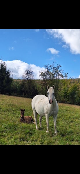 My Arabian cross mare is looking for a new home. She is 15 years old, stands 14.8 hands high, and is a dedicated leisure horse that also enjoys groundwork. Currently, she is still caring for her colt foal, which will be weaned at the end of December 2025. The colt foal is also available for sale. In early 2026, I plan to resume training with my mare. At the moment, she is simply enjoying her role as a mother. Anyone genuinely interested in my mare is welcome to contact me. Please note, this is a private sale. Therefore, no guarantees or warranties are provided.