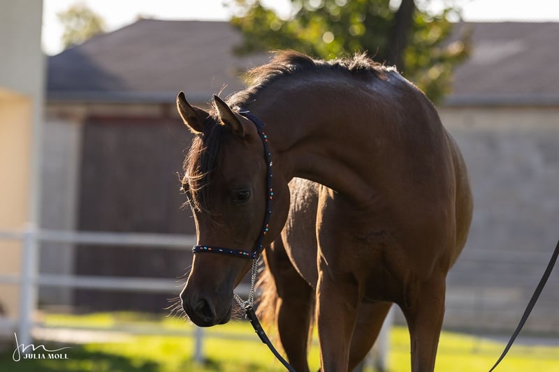 The mare is already familiar with transporters and has been show-trained. She has excellent movements and is very eye-catching.