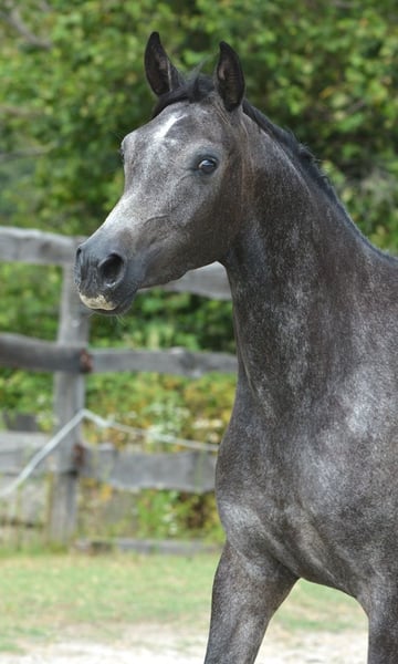 Elewa is a stunning young mare with a lot of quality. She has a very solid foundation, a well-balanced body, beautiful movement, and a remarkable presence. She is highly suitable for future breeding, and also has the potential to become a sporthorse. She comes from one of the best dam lines at the State Stud Michalów. Her sire is Albedo, bred at Janów Podlaski. Her dam is a multiple champion and daughter of the Bronze European Champion. Elewa is healthy and just starting under saddle. She is very well-behaved and learns quickly. In the photos, her mother Eliksja (gray) and her sire Albedo (dark brown) are shown.