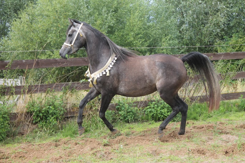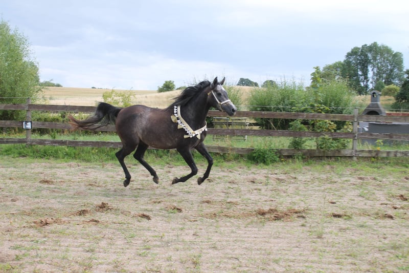 Diese wünderschöne und typvolle Araberstute sucht einen neuen Mörchengeber. Sie besticht durch ihr menschenbezogenes Wesen und den unkomplizierten Umgang. Sie vereint durch ihre Abstammung Leistung mit Schönheit. Auffällig ist der sehr elastische Trab und der kraftvolle Galopp. Sie ist sehr bewegungsstark und sehr wendig. Ich kann sie mir daher auch im Westernreiten gut vorstellen. Interessant ist auch, trotz der Rasse, ist sie im Wesen sehr ausgeglichen. Sie ist sehr menschenbezogen, gelehrig und wie schon beschrieben, unkompliziert in ihrer Handhabung. Sie ist hier geboren und in einer Herde gross geworden. Sie kennt Boxenhaltung, aber zur Zeit 24/7 auf der Weide. Sie wurde über den Sommer ganz schonend am Hof angeritten, leider abgebrochen, da die Bereiterin nach Süddeutschland gezogen ist. Video gerne über Whatsapp! Ist ca 155 cm gross.