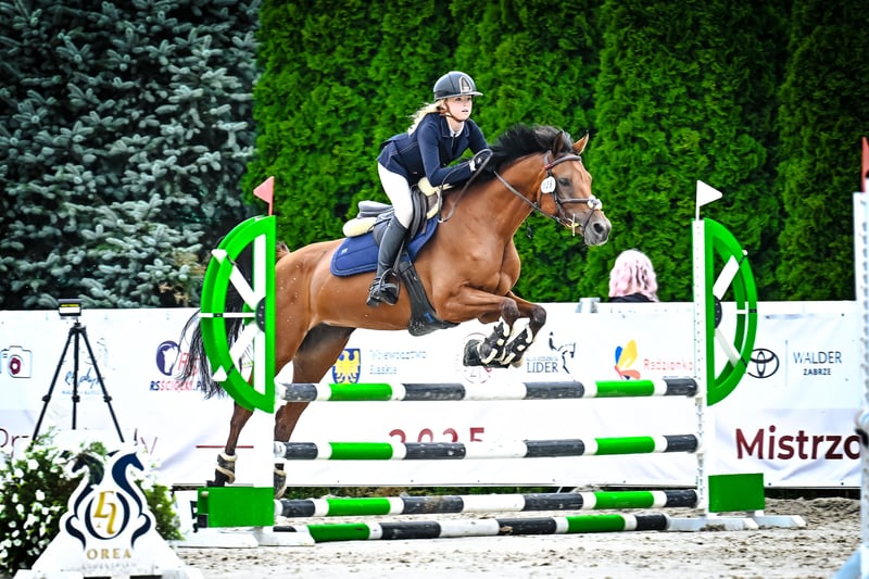 Oferuję na sprzedaż 8 letnią (27-02-2018), gniadą klacz czystej krwi arabskiej o imieniu OSA po Kuheilaan Aafas Maidaan i Owidji. Wzrost 150 cm Klacz idealna dla dziecka, juniora do nauki skoków, wprowadzenia w pierwsze starty lub dla osoby dorosłej o drobnej budowie. Koń, który większość zawodów był na podium. Kocha wygrywać i kocha rywalizację. Jeśli szukasz konia ładnego, o miłym chrakterze, grzecznego, to Osa to koń idealny. Koń będzie dodawał pewności przy skokach, pomoże w rozpoczęciu kariery sportowej. Nigdy się nie zatrzymała przed przeszkodą, odbija się z każdego dystansu i nie zraża się do skoków. Osa jest koniem równo galopującym, szybkim i zwrotnym, który jest idealny do wygrywania. Jest grzeczna, nie sprawiająca problemów, bardzo lubi skakać. Koń regularnie jest padokowany ( w stadzie jak i sama), chodzi bezproblemowo w karuzeli, chodzi w teren sama jak i w grupie a także z osobą na rowerze. Łatwa w zabiegach pielęgnacyjnych np. kąpiel lub solarium. Nie robią na niej wrażenia żadne kolorowe przeszkody, podmurówki, woda, ruch wokół parkuru. Bezproblemowa w transporcie i przy kowalu. Kuta na przody. Regularnie odrobaczana i szczepiona dwa razy w roku. Pod opieką fizjoterapeuty. Regularna opieka dentysty. Nigdy nie chorowała, nie miała kontuzji. Koń jest z nami od 03/2023 i został od początku przez nas wszystkiego nauczony. Rozpoczęła starty w skokach w 10/2023 i od tego czasu regularnie startuje. Obecnie na poziomie 90/100 cm. Tylko do dobrego, kochającego domu. Nie do szkółki rekreacyjnej. Szukamy osoby, która będzie ją kochać. Startowała w Sileasia Jumping Cup 2025 wygrywając finał, Summer Cup Finał Mężyński RC Sosnowice 2024 zajmując pierwsze miejsce. Startowała w Halowych mistrzostwach Śląska w 2024, Mistrzostwach Śląska w skokach przez przeszkody 2025 Radzionków. Była na zawodach w Prudniku, Opolu, Lesznie, Bogusławicach, wiele razy w Sarnowie, Lando, Radzionkowie, Zbrosławicach, Sosnowicach.